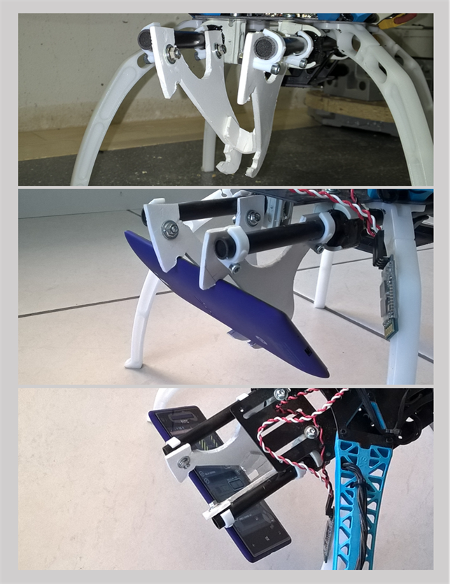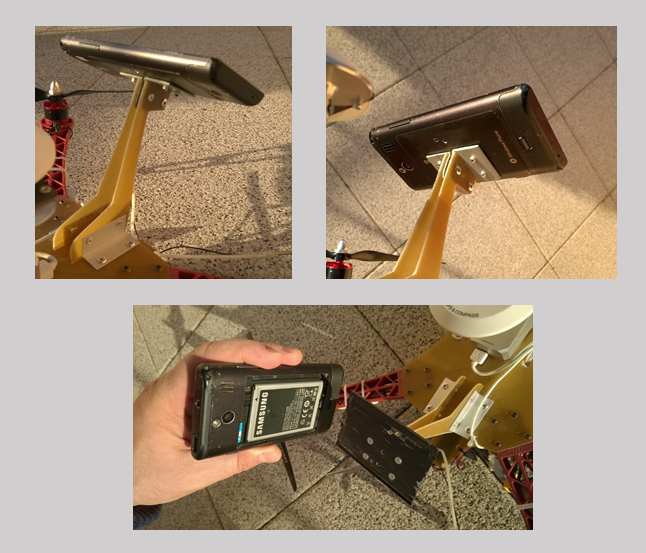 The following images show some solutions for attaching smartphones successfully to multicopters.