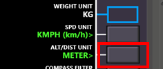 Press LSK R3 repeatedly to cycle through the supported units for distances or altitudes (the same setting applies to both).