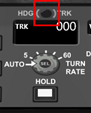 Each time the HDG / TRK selector is pressed, the directional mode toggles between HDG and TRK (as indicated on the Direction display beneath).