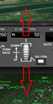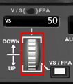 Each time the V/S / FPA selector is pressed, the climb/descend mode toggles between VS and FPA (as indicated on the display beneath).